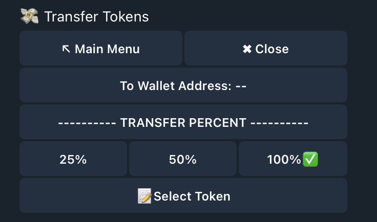 * **Transfer Percent** - Choose from preset % amounts of the token to send.